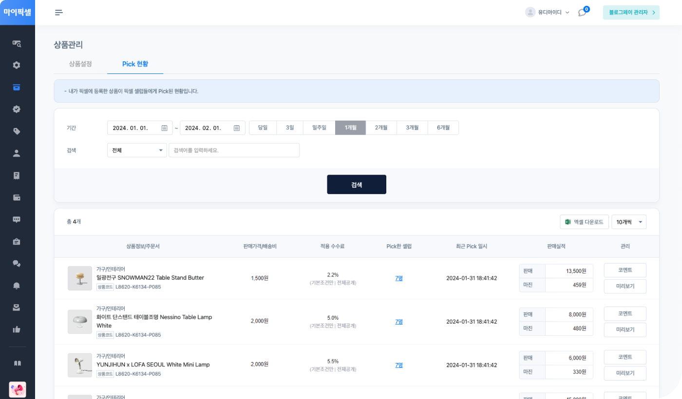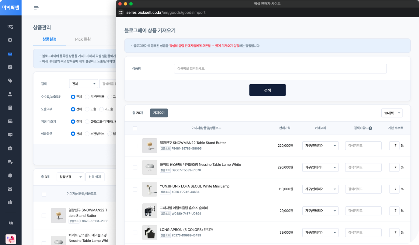 인플루언서가 바로 Pick해서 판매할 수 있어요.